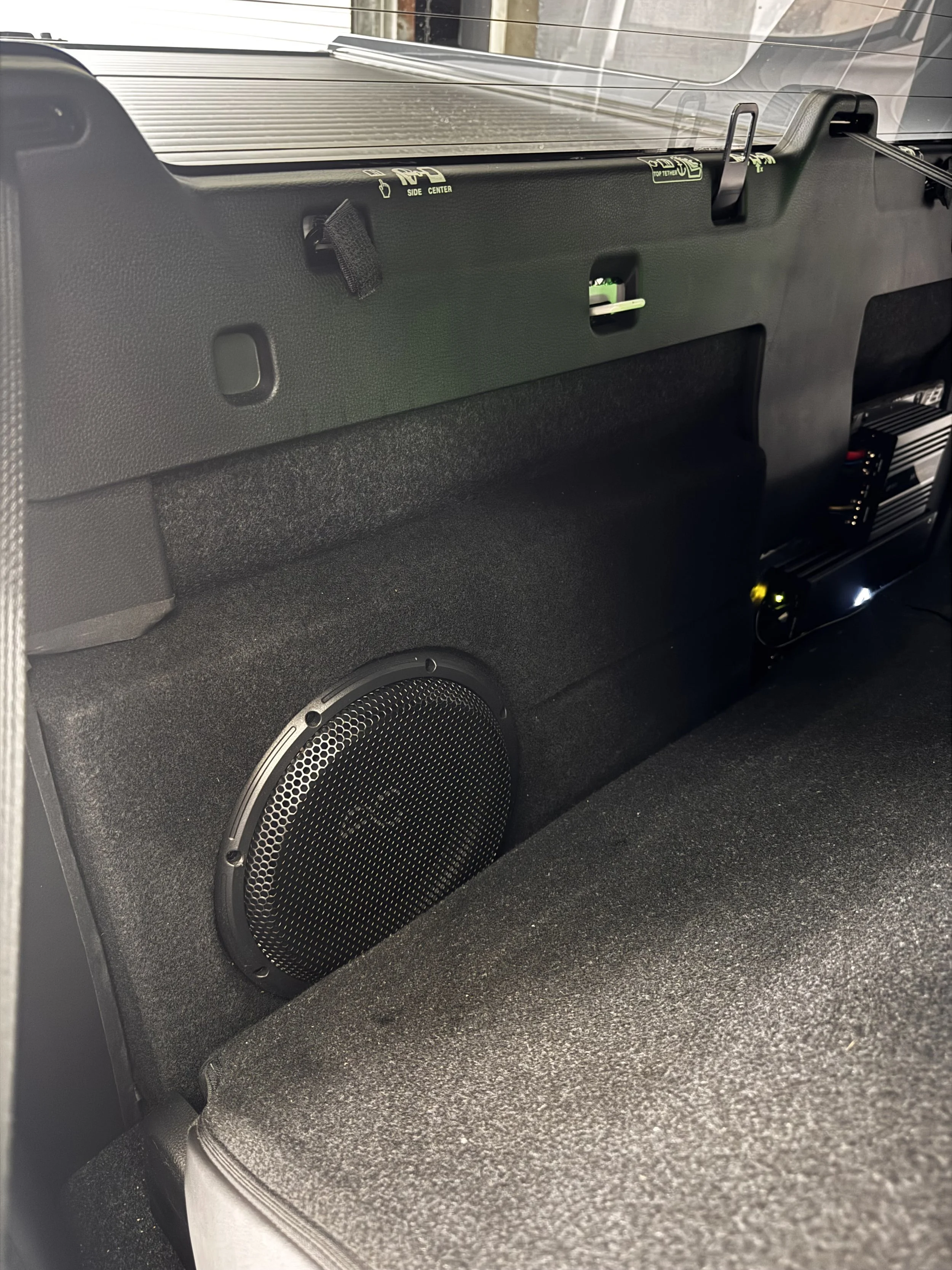 Two amplifiers were neatly mounted on a custom amp rack behind the rear seat, keeping everything clean and tucked away. To top it off, we built a custom 10-inch subwoofer box from OZ Audio, fitted with a high-performance 10” AudioControl subwoofer. It delivers surprisingly deep, punchy bass, fitting neatly behind the rear seat with just minor trimming to the plastic for clearance.