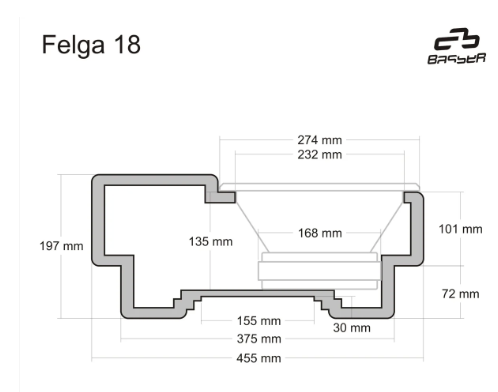 Fits wheel 18", subwoofer 10"/25cm, volume 15 litres.